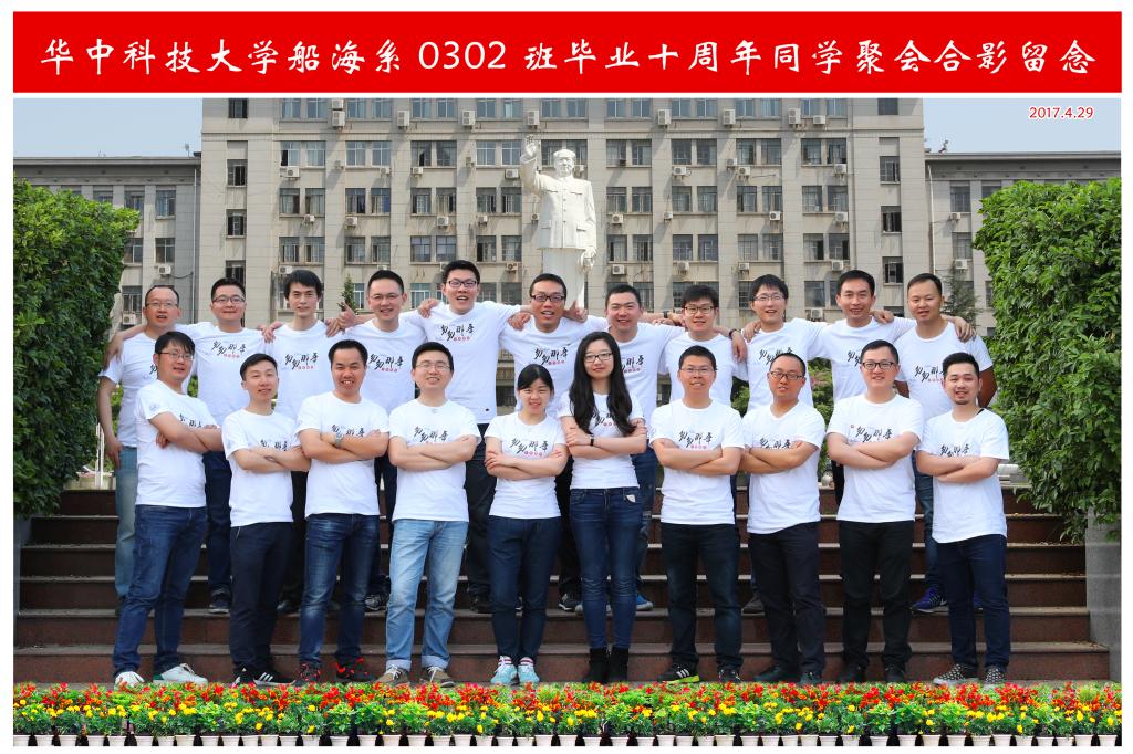 上午,船海0302班同学们刚聚齐母校,便来到了韵苑地标爱因斯坦广场,再次留下班级大合影。随后,一场意义非凡的班会在东九楼召开,精心制作的小视频唤起10年前那段青葱岁月。