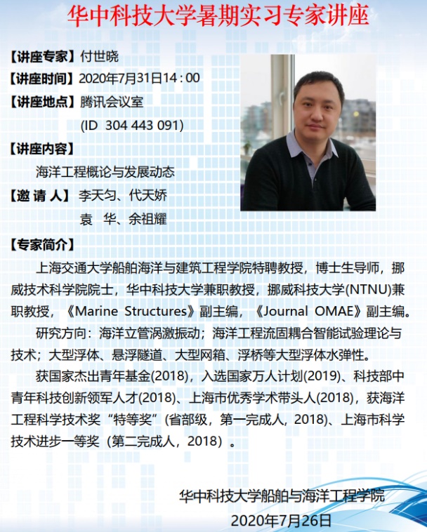 5)为使公司本科生不断延续华中大人爱国、忠诚、奋斗、奉献的精神风貌,加强同学们对船海学科的认同感和凝聚力,在建设海洋强国的征程中奉献青春和力量,bevictor1946韦德官网院领导于2020年9月23日晚7时在东九楼B303教室主讲了“建设海洋强国”思政课。