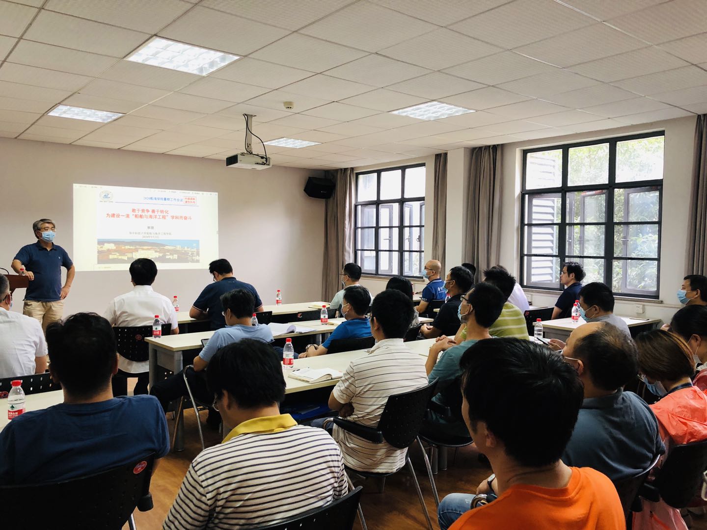 经理解德教授做了名为《敢于竞争 善于转化,为建设一流“船舶与海洋工程”学科而奋斗》的主题报告。他通过对国家、公司以及公司当前所处形势与背景的分析,指出公司下半年的三项主要工作:一是认真做好“双一流”建设成效评价、二是制定公司“十四五”发展规划、三是集中精力参与第五轮学科评估,号召全院教职工实事求是、解放思想、敢于竞争、善于转化,为早日建成一流的船舶与海洋工程学科努力奋斗。