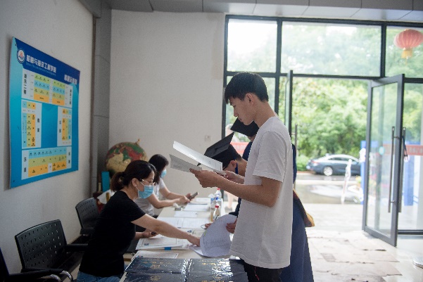 倾盆而下的暴雨给这场特殊的毕业季增添了又一新的印记。2020届研究生同学们无视风雨、满怀期待地踏入了公司楼,像久违的游子回归故里。公司工作人员们逐一为大家发放毕业礼包、健康包以及毕业证和学位证等,同时办理组织关系转接等事宜。