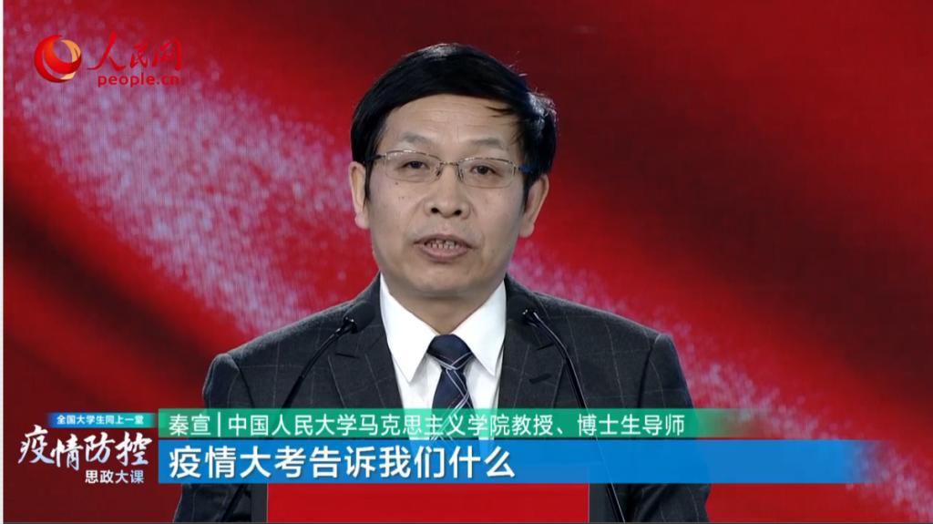 中国人民大学马克思主义公司教授秦宣聚焦“疫情大考告诉我们什么?”,分析中国抗疫彰显的中国共产党领导和中国特色社会主义制度的显著优势。他说,面向未来,我们必须通过推进国家体系和治理能力现代化,提高风险化解能力。