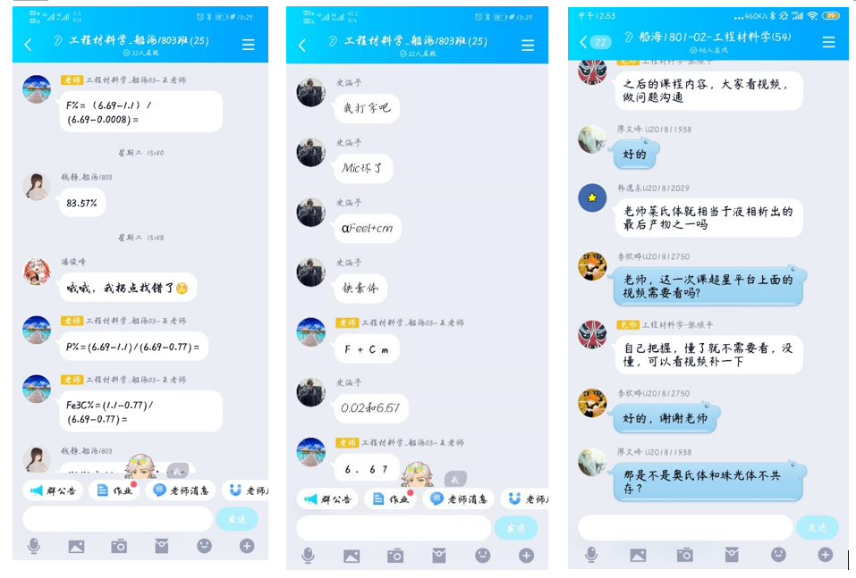 《机械原理实验》课堂上,同学们将自己所画的机械简图发到QQ中,老师地对同学们提交的机械简图进行耐心指导并指出其中的错误。还有部分同学一直通过打电话的方式进行沟通,互相帮助,解决学习上的疑难问题。