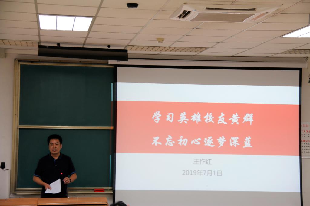7月1号晚,东九B102,公司党委书记王作红以“学习英雄员工黄群,不忘初心逐梦深蓝”为主题,为全院员工党员上了一堂生动的思政课。
