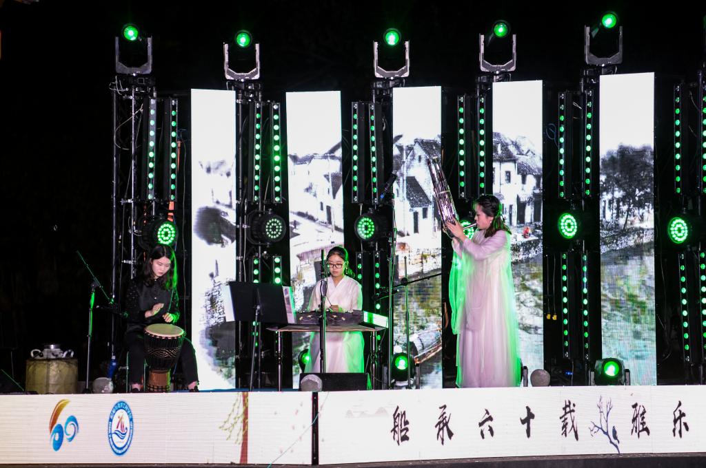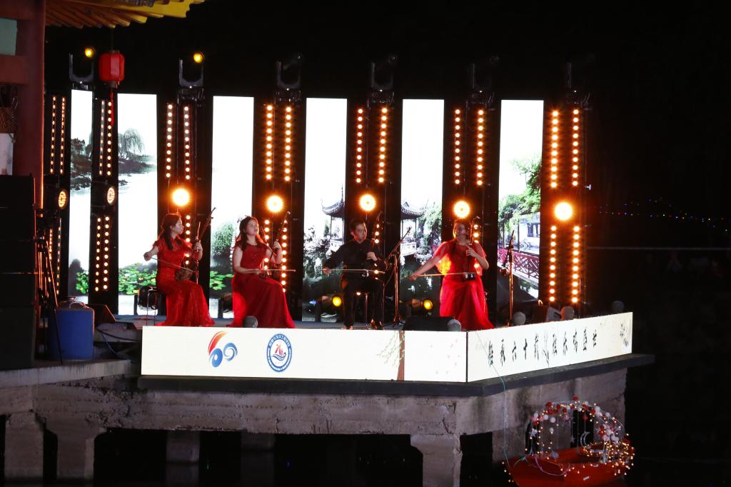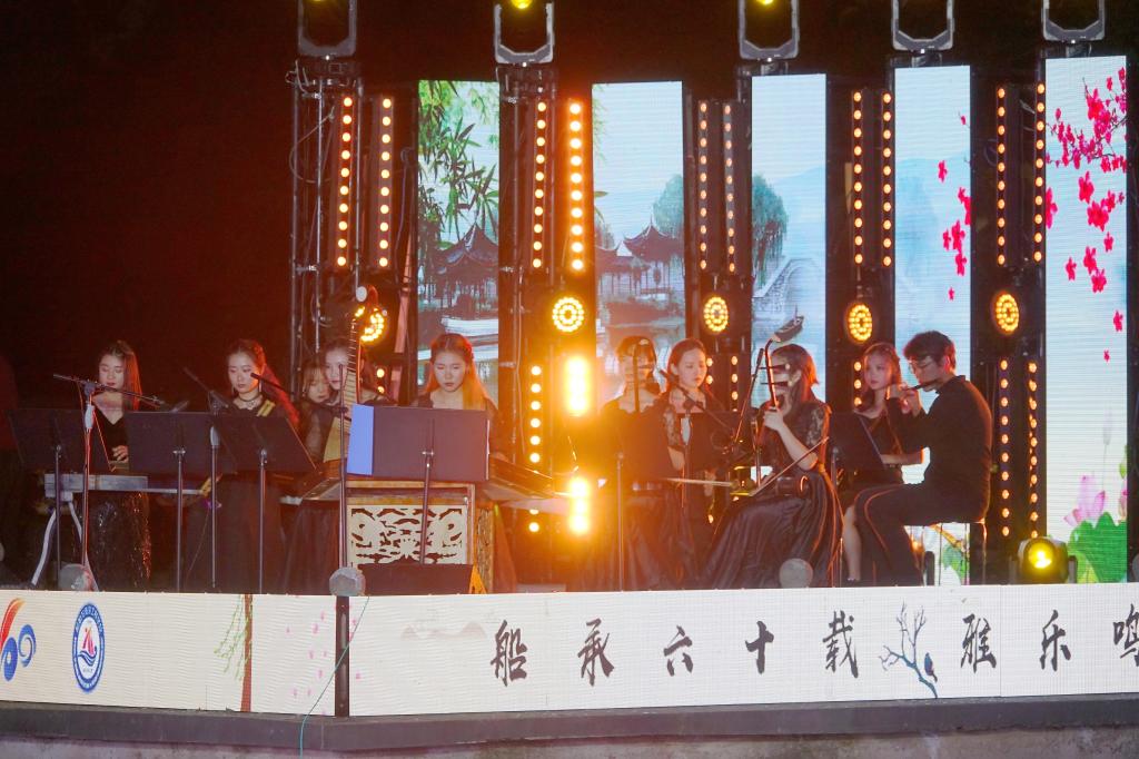 “此夜亭中闻曲音,何人不起醉晚情”。篇章二追忆醉晚人传承醉晚二十余载,坚守醉晚音乐艺术、传承醉晚精深文化的执着信念。武汉音乐公司的胡琴四重奏《数蛤蟆》具有浓郁的湖北地方色彩,具有幽默、欢快与爽朗的音乐特点与情趣。公司的笛子重奏《跑旱船》,将浓郁的中国民间音乐元素和喜庆祥和的音乐氛围融入到了欢快跳跃的笛声中,描绘了跑旱船欢快热闹的场面。华中师范大学的古筝重奏《沙漠玫瑰》释放出了无限的西域风情,展现出沙漠玫瑰在万里黄沙中妖娆绽放的倔强姿态。