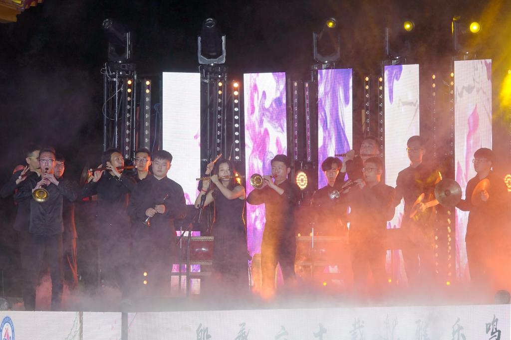 “神州大地花似锦,祖国长空曲如潮”。篇章四憧憬在承前启后、继往开来的新时代背景下,中华民族伟大复兴的光明前景。也是展示新中国成立七十周年来,中华儿女在开创绵亘万里的丝绸之路时披荆斩棘、一往无前的精神风貌。来自中国地质大学的独弦琴弹唱《风吹云飘》,展现了京族人民以海为伴、以海为家的海洋文化。武汉纺织大学民乐合奏《花好月圆》,灵活地将西方和声技法和具有浓郁民族风格的旋律相结合,表达了人们对美好生活的憧憬。公司笙协奏《欢乐的草原》是一首活泼的新疆曲,由辽阔的草原转向人们欢快的狂舞。武汉音乐公司吹打乐合奏《风入松》,气势恢宏,给晚会画上圆满的句号。