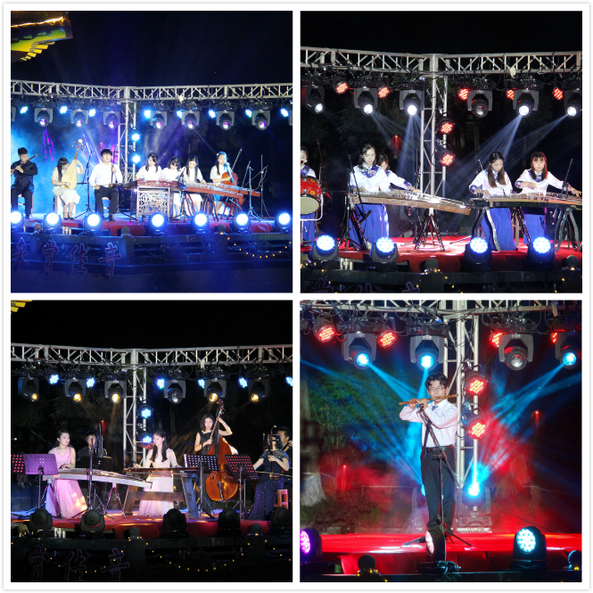 第四篇章“今赏曲中人,谱奏新光景”体现了当代人追寻开辟一番更美好的光景的脚步。时光长河一刻不停地流淌,探寻前方,用努力换回美好,用汗水赢得希望。bevictor1946韦德官网员工带来的乐曲《枉凝眉·葬花吟》,用轻缓的节奏,哀婉的旋律,感染了每一个观众。华中农业大学同学一曲《战马奔腾》急促而激烈,仿佛千军万马,雄壮无比。《渔舟唱晚》本是一支中国古曲,却在萨克斯与笛声的共同演奏下,有了特别的风味。《印象国乐》,气势恢宏,是真正的中国民族音乐理想,中南财经政法同学一曲合奏为晚会划上一个圆满的句号。