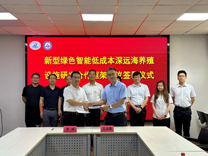 2023年9月7日,武汉船舶设计院有限公司(以下简称“武船院”)经理王治国、总工程师祝海勇、701所信息化室副主任周健一行来公司就“新型绿色智能低成本深远海养殖装备研发合作”签署框架协议。
