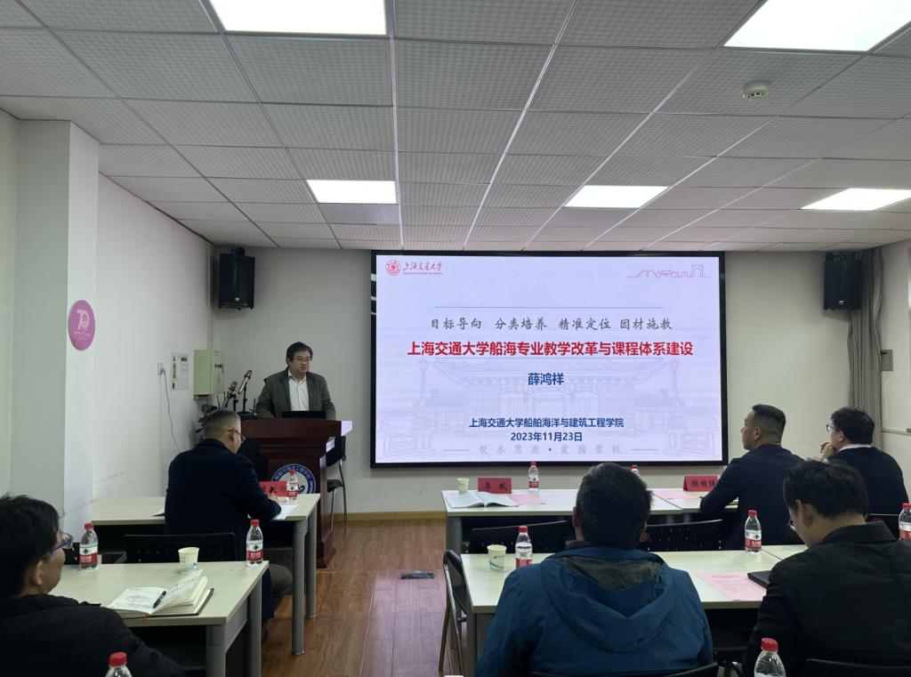 薛鸿祥教授作了题为《“目标导向 分类培养 精准定位 因材施教”上海交通大学船海专业建设与教学改革》的主题报告,介绍了上海交通大学船舶海洋与建筑工程公司以员工发展为中心开展精准定位,开展伯乐计划、荣誉计划、攀登计划、助飞计划——“大质保”体系建设,定制培养方案进行分类培养;以船舶与海洋工程专业为例,面向科技发展和产业变革,重塑课程体系,开展工程总师型、学术教授型教育;不断向深海、远海拓展,与数学、信息智能、绿色低碳等学科融合,构建复合交叉的课程知识体系,打造“船舶与海洋工程”“数学与应用数学”双学士学位项目;将专业理论、先进技术和工程经验充分融合,带动课程教学不断与时俱进的一系列先进经验与具体举措。同时,薛鸿祥教授还分享了上海交通大学于2021年作为新一轮本科公司产品审核评估试点高校开展迎评促建的工作经验。