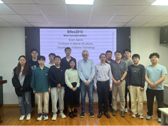 Svein Sævik教授的讲座内容丰富,启发性强,激发了在座师生们对海底管缆数值模拟技术方面的研究兴趣。在讲座的自由交流环节,在场的师生踊跃发言提问,Svein Sævik教授与师生们互动氛围热烈,对提出的各类问题都进行了充分的解答。讲座结束后,Svein Sævik教授与师生们一起合影留念。