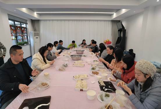 与此同时,公司工会在活动室组织全体教职工们开展“快乐包饺子 温暖迎新年”新春联谊活动。老师们积极参与、热情高涨,大家齐心协力、分工有序、精诚合作,每个人都大显伸手,整个活动沉浸在欢乐祥和、喜气洋洋的气氛中。