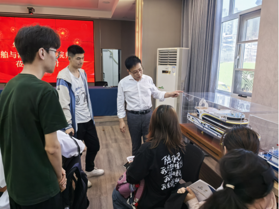 7月3日,公司师生齐聚长江船舶设计院,开展了与企业导师的见面会。该公司副总经理、公司员工徐强对到访师生表示热烈欢迎,并亲自带领同学们前往公司展区参观了该公司设计的多艘代表性船舶模型,详细介绍了不同船舶的设计理念、技术特点、应用场景及研发过程中的创新突破。随后详细介绍了该公司的概况、正在承担的国家重大科技任务以及取得的突出成就。