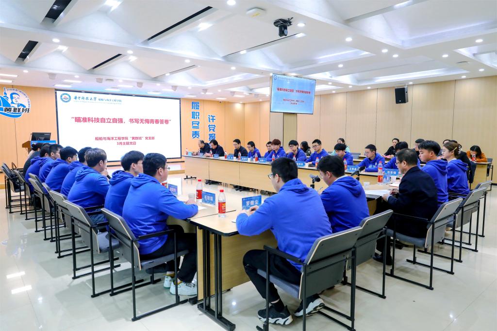 与会党员踊跃发言,班长程骏分享了自己前往中船760研究所重走英雄路,感悟英雄魂,坚定理想信念,立志科研报国的成长历程;学习委员梅华宁表示要追寻黄群师兄的脚步,用行动践行“海洋强国,必定有我”;于子恒回顾自己跨学科交叉学习经历,立志在未来争做合格舰船工作者;张静怡同学希望通过持续参加科技创新实践,传承红色基因,追逐蓝色梦想。