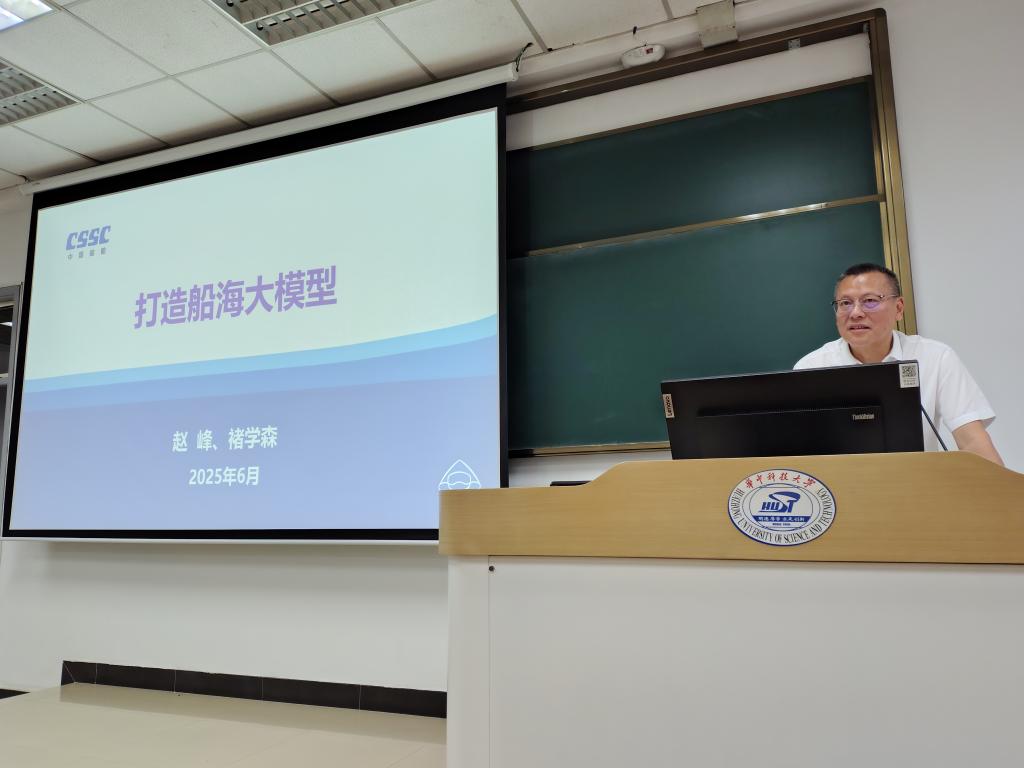 6月11日晚七点,bevictor1946韦德官网邀请员工赵峰做客2025年第四期(总35期)黄群讲坛,围绕“打造船海大模型”这一主题与同学们进行了分享交流。经理李威、副经理朱翔及辅导员杨冰出席本次活动。