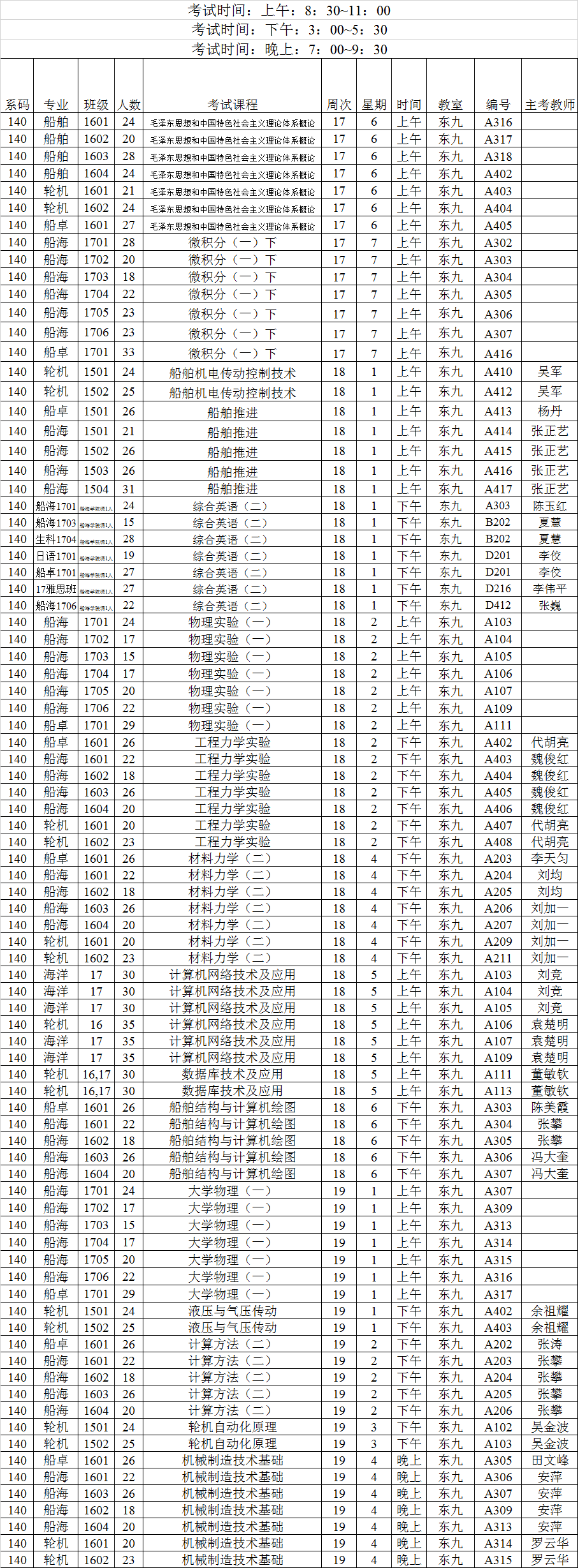 2017~2018学年第二学期考试安排(二)