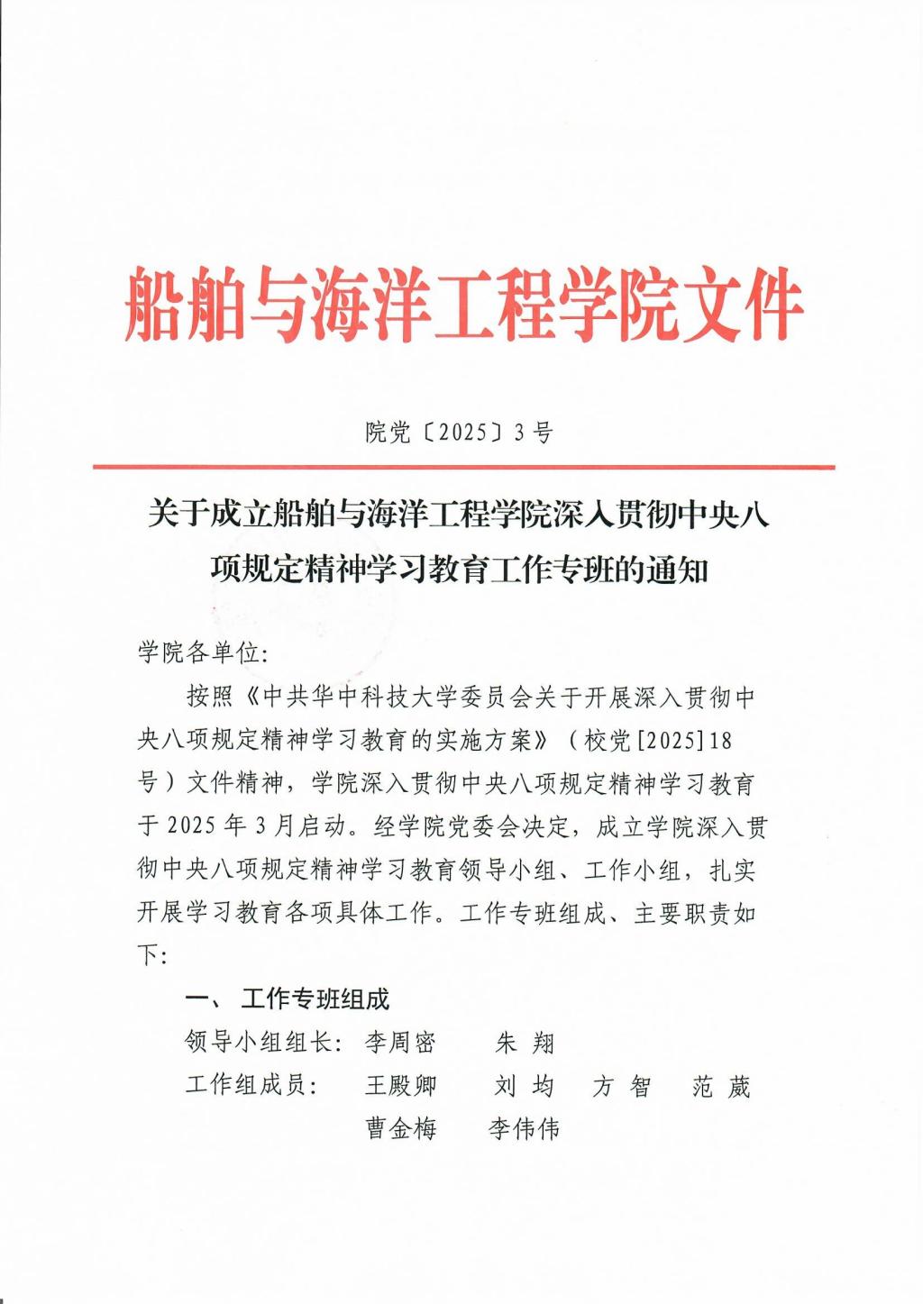 关于成立bevictor1946韦德官网深入贯彻中央八项规定精神学习教育工作专班的通知