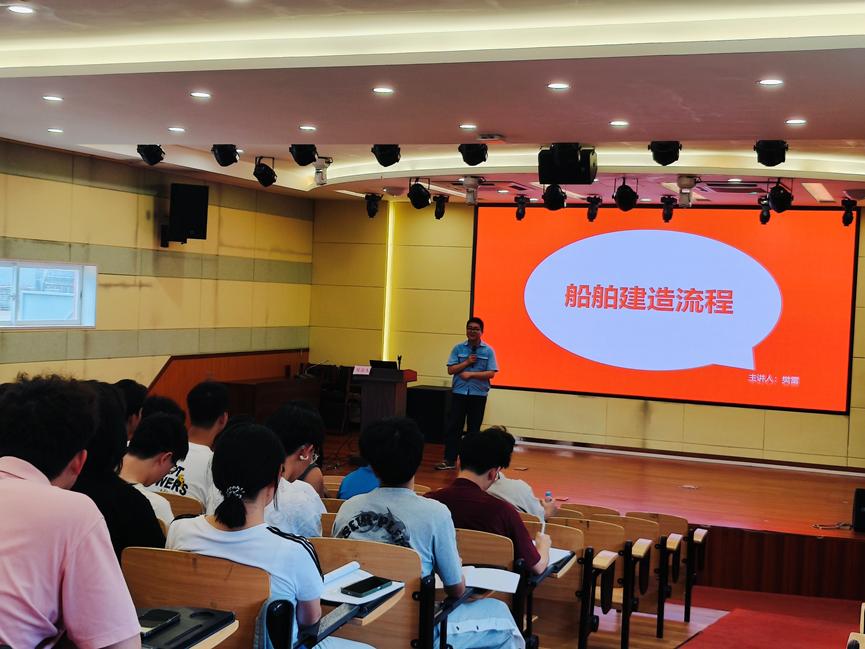 中船黄埔文冲船舶有限公司是中国船舶集团有限公司属下的大型骨干造船企业,是华南地区军用舰船、特种工程船、海洋工程、公务船及商货船的主要建造基地,也是目前中国疏浚工程船和支线集装箱船最大最强生产基地。在中船黄埔文冲船舶有限公司长洲厂区,公司培训教师首先对同学们进行了安全和保密教育,然后用具体示例解读了企业文化精神:军工精神开辟前进航向、先进文化引领美好未来,使同学们全面了解了公司企业文化、产品以及发展前景。随后培训教师交替开展理论学习和现场教学:理论学习包括典型船舶构造、船舶生产工艺、船舶建造流程等,让同学们对船舶设计过程有了全新的认识;现场教学囊括厂史馆、船坞、造船生产线、在建的船艇舱室等。理论知识与生产实践的结合,增强了同学们的专业认同感,坚定了立足船舶工业作奉献的信念。