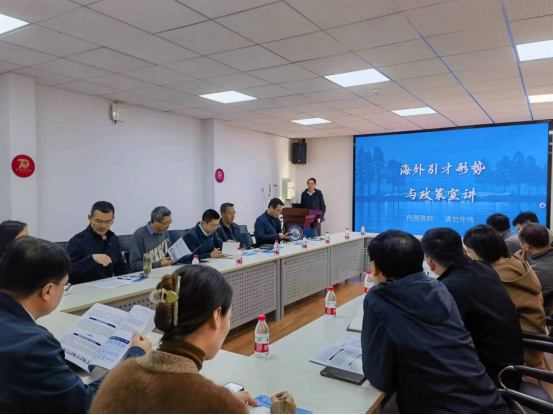 向先波副经理首先进行海外引才形势与政策宣讲。他介绍了公司人才引进激励政策,公司出台了人才引进激励政策办法,从科研经费、安家费、薪酬配套、配偶工作解决、子女入学入托等方面政策进行解读。