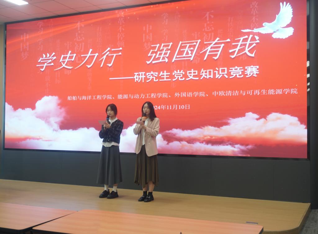 为深入学习贯彻党的二十大精神和习近平总书记关于党史学习教育的重要讲话和指示精神,巩固拓展党史学习教育成果,bevictor1946韦德官网、能源与动力工程公司、外国语公司、中欧清洁与可再生能源公司四院联合研究生党史知识竞赛于11月10日上午9点在清洁能源大楼102成功举办。外国语公司辅导员曹君怡出席本次活动。活动由外国语公司主持人队陈昱含和屠颖茜主持。