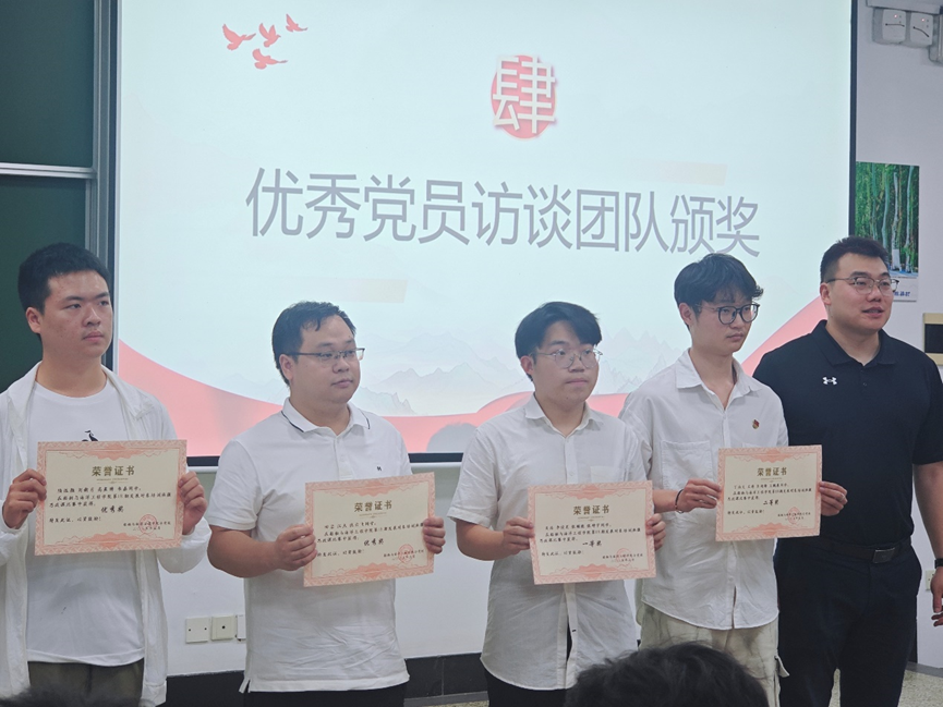 在优秀学员代表发言环节,三位代表结合个人具体实际做了感人肺腑的分享。积极分子代表王歌然回顾了在培训班学习实践、采访优秀党员和交流分享的过程,表示党的宗旨不是一句口号,应该深入个人内心并具化为行动。发展对象代表吴浩表示自己将以黄群学长为榜样,以空杯心态求真知、我将以工匠精神练本领,以“服务之心”亮身份。预备党员代表汪鉴用觉醒——从“追求优秀”到“信仰扎根”的思想蜕变、锤炼——在理论学习与实践熔炉中淬炼初心、担当——以青春之名践行“请党放心”的誓言总结了自己在党旗下成长的故事。