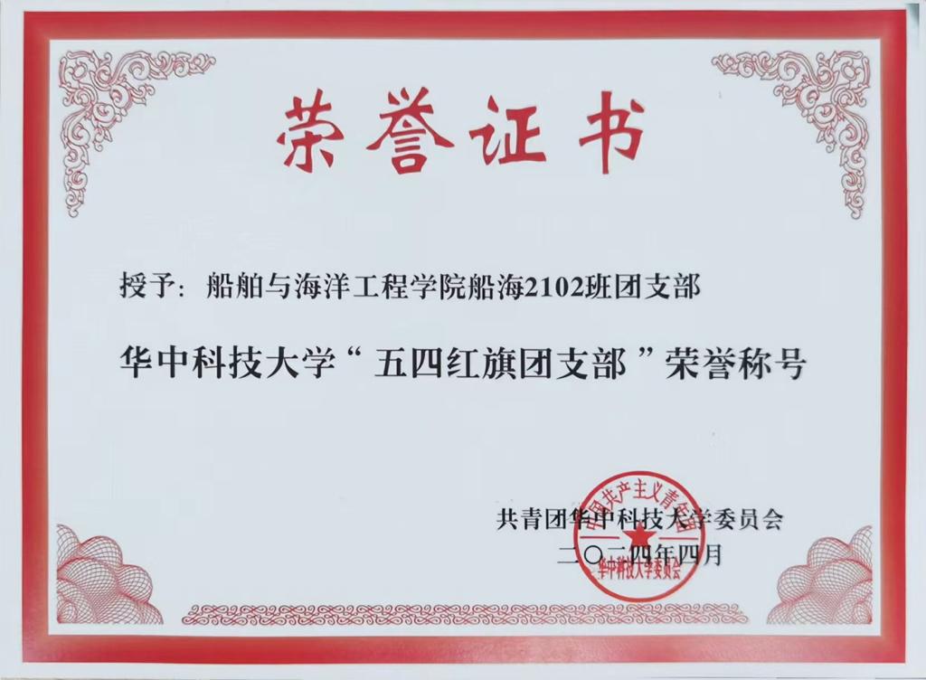 船舶与海洋工程2102班团支部荣获校“五四红旗团支部”