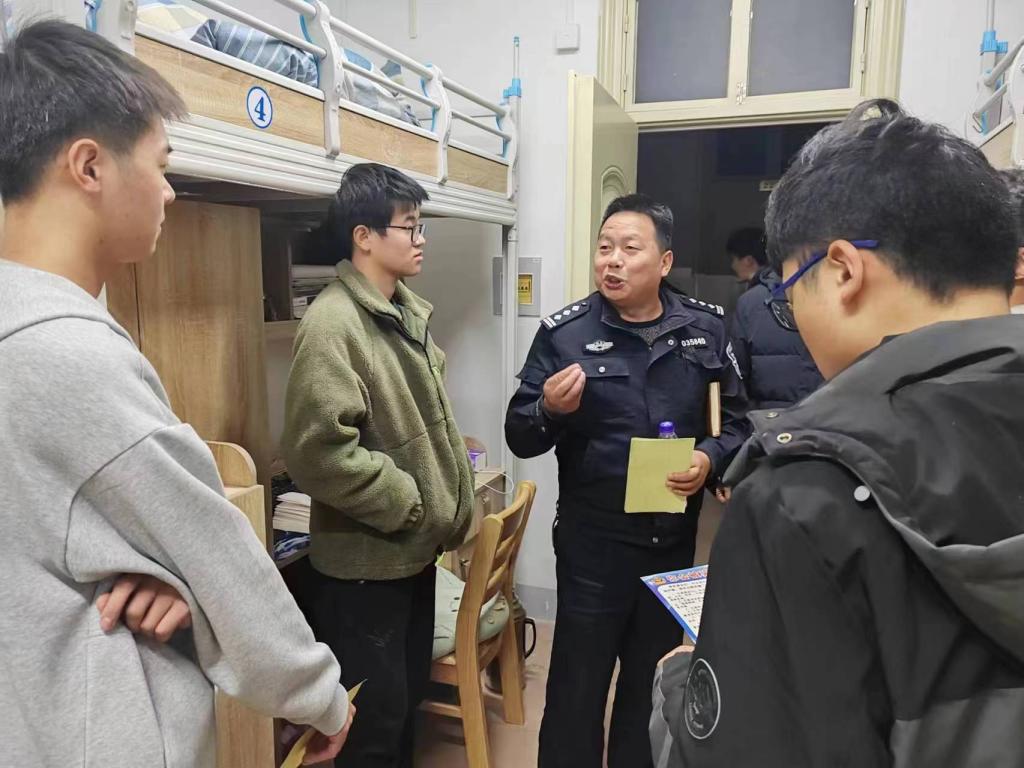 讲座结束后,熊警官与靳丰富老师带领班级安全员深入员工宿舍,为每个宿舍发放发诈骗宣传单,普及反诈骗知识。