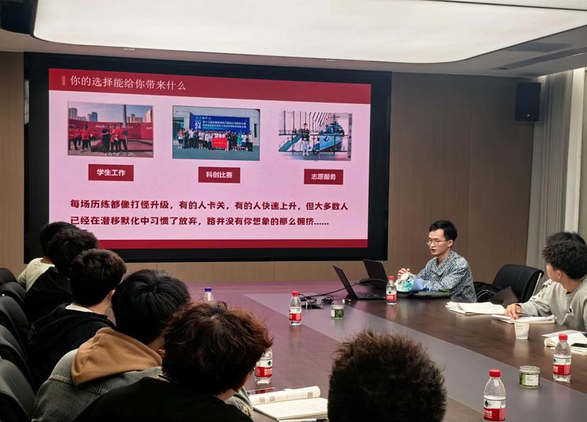 2024年11月8日,秋尽冬始,bevictor1946韦德官网创新实验班2401班“学习交流讲座”系列活动(第二期)在bevictor1946韦德官网会议室隆重举行。本次活动邀请了船舶与海洋工程2102班(黄群班)舒铭学长(现已保送至清华大学)就“保研与国奖”主题进行交流分享,秦俊峰同学主持讲座活动。教师班主任李天匀教授、辅导员杨冰老师及班级全体同学参加。