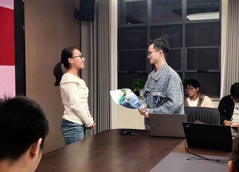 活动开始前,刘娇同学代表全班同学对舒铭学长表达了诚挚的欢迎并献上鲜花。随后,主持人秦俊峰向同学们介绍了舒铭学长在各方面取得的显著成绩,班主任李天匀教授为本次活动致辞,强调要向舒铭学长这位身边的榜样学习。本次交流活动在同学们热烈的掌声中正式开始。