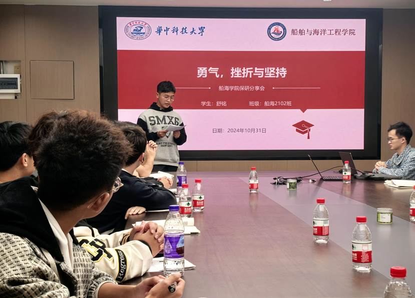 第二期“学习交流讲座”活动的成功举办,不仅让同学们领略到了舒铭学长的风采,也为同学们提供了一个与优秀学长面对面交流的平台和机会。同学们从舒铭学长身上不仅收获了宝贵的经验和知识,还坚定了作为一名华科大学子应该具备的“敢于竞争、善于转化”的决心和信心。未来,船海创新实验班2401班将继续举办更多系列活动,邀请业界专家学者和更多优秀学长,为同学们提供丰富的交流和学习机会,帮助自己尽快找准人生奋斗目标,助力同学们成长、成材,为建设海洋强国贡献青春力量!(撰稿人:彭健成)