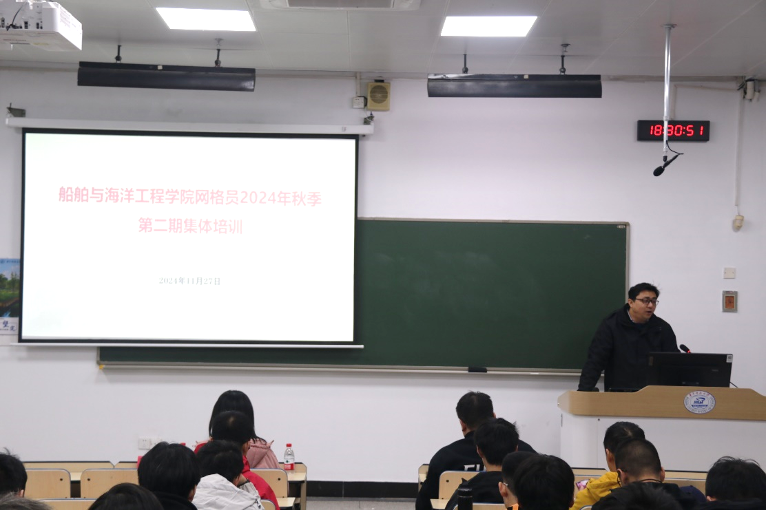 2024年11月27日晚,bevictor1946韦德官网网格安全员2024年秋季学期第二次集体培训在东十二楼111教室顺利开展。本次活动邀请到了公司党委副书记李周密老师、校心理健康教育中心李升岚老师以及校保卫处治安与消防管理科蒋卫东老师为公司所有网格员开展培训,公司研工组长靳丰富老师主持活动。