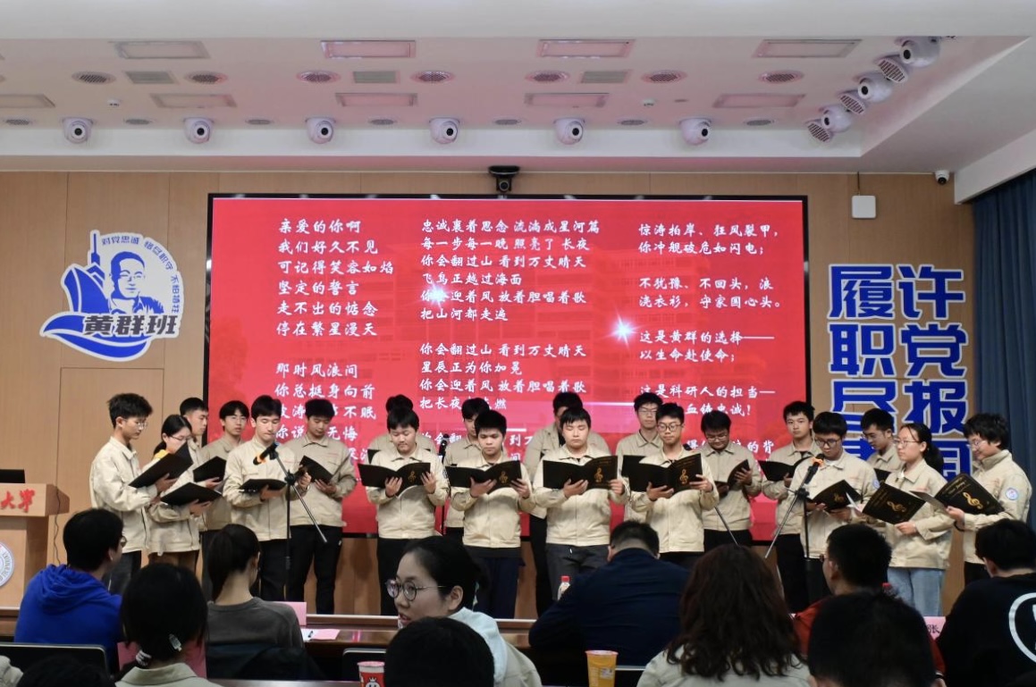 国歌奏唱完毕,“黄群班”风采展示环节正式开启,六个候选班级按照抽签顺序依次登场。