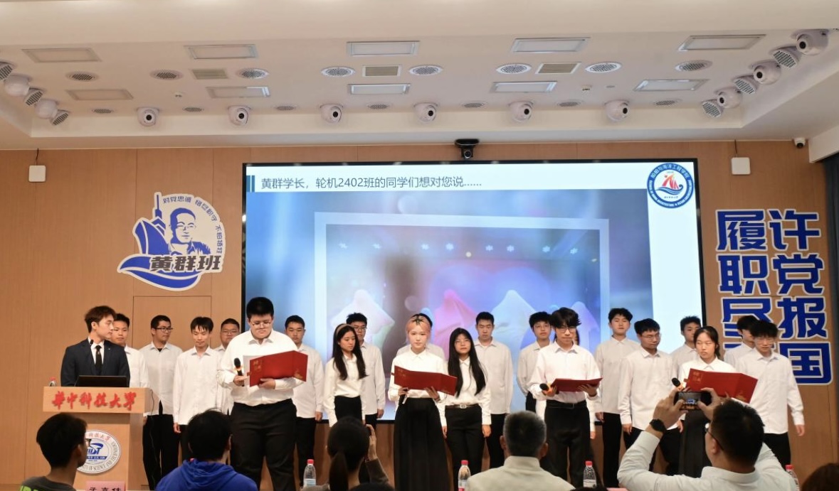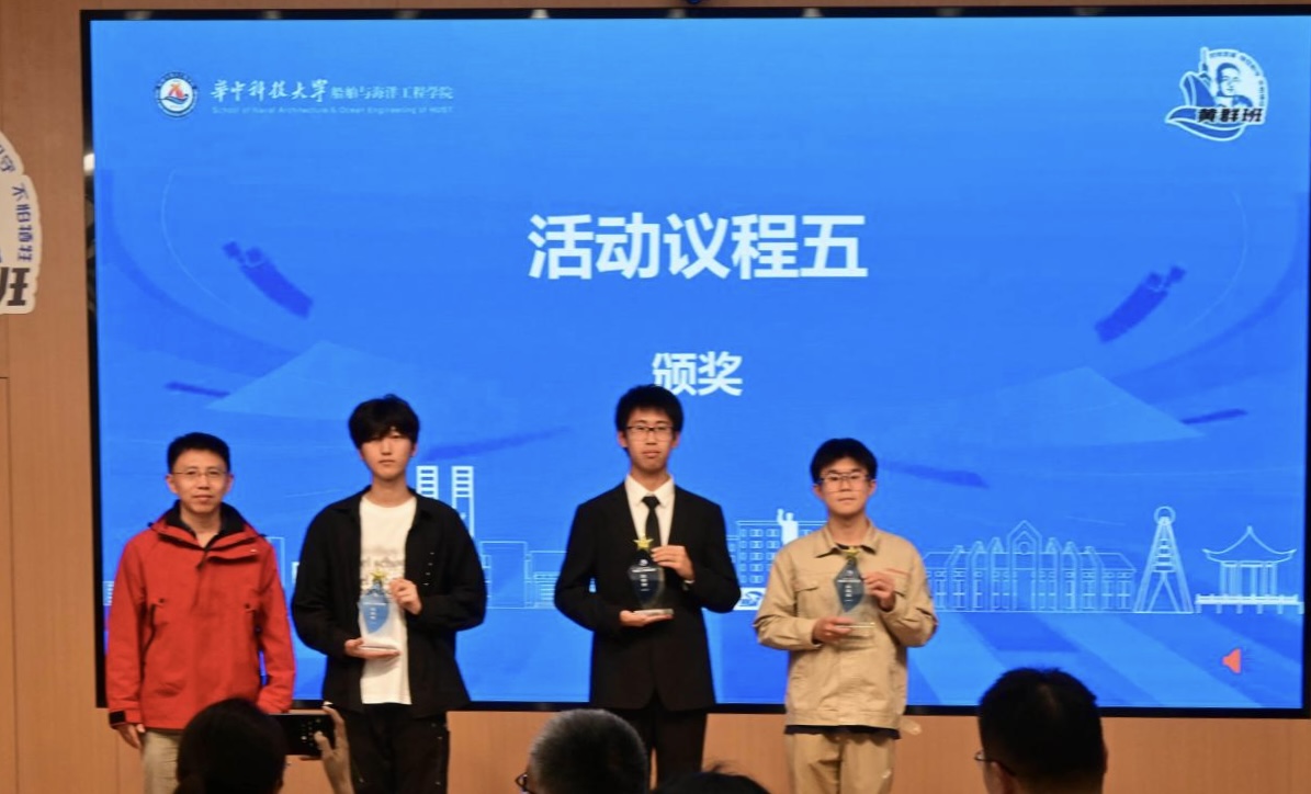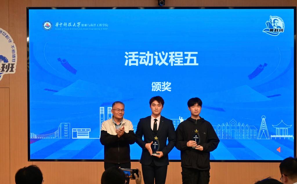最后评委们结合班级日常表现、现场展示效果等多维度进行综合评定,确定获奖名单。轮机2401班凭借突出的综合表现荣获“黄群班”称号;轮机2402班、船创2401班以扎实的班级建设获评“传承班”;船海2401班、船海2402班、船海2403班因积极向上的班风获授“致敬班”称号。颁奖环节中,公司领导老师分别为获奖班级代表颁发奖杯,现场响起阵阵掌声。