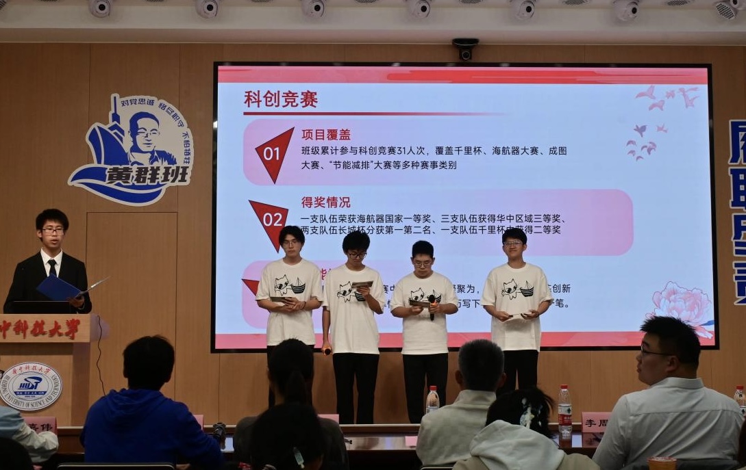 船海2401班的展示充分体现了班级注重实践、全面发展的特色。班上多名同学积极参与科技创新项目,展现出扎实的专业能力和探索精神。同时,同学们有丰富的的实践经验,在切实的生活实践中落实了黄群精神,深刻诠释了"知行合一"的班级理念。在展示的最后,全体同学清唱《我和我的祖国》,同学们用质朴而真诚的歌声,表达了对祖国的深厚情感,也展现了青年一代将个人成长与国家发展紧密相连的决心与担当。